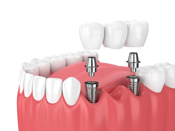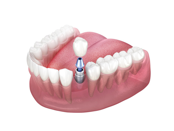 A dental implant involves a simple and painless surgical procedure that allows the natural replacement of a missing or decayed tooth. Implants are also used to anchor removable dentures, dental implants look and feel like natural teeth. Dental implants also ensure that dentures never fall out, allowing the person to eat and smile with confidence. also used to support other dental prosthesis, like removable dentures, permanent bridges and crowns. Dental implants are made of titanium, which is the material best accepted by the body.